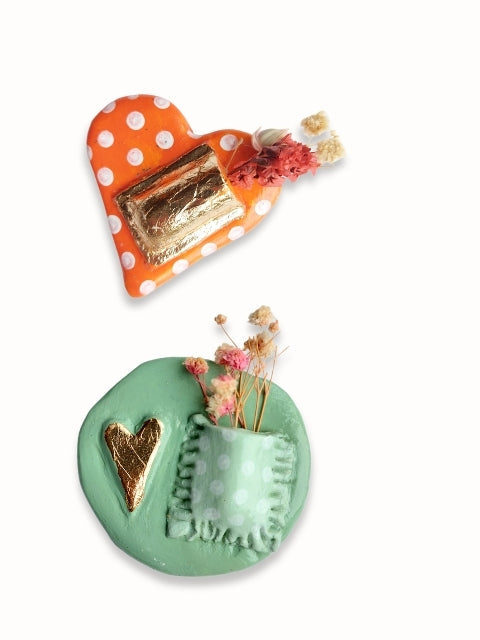 Handgemaakte magneten van klei met een "Touch of Gold"