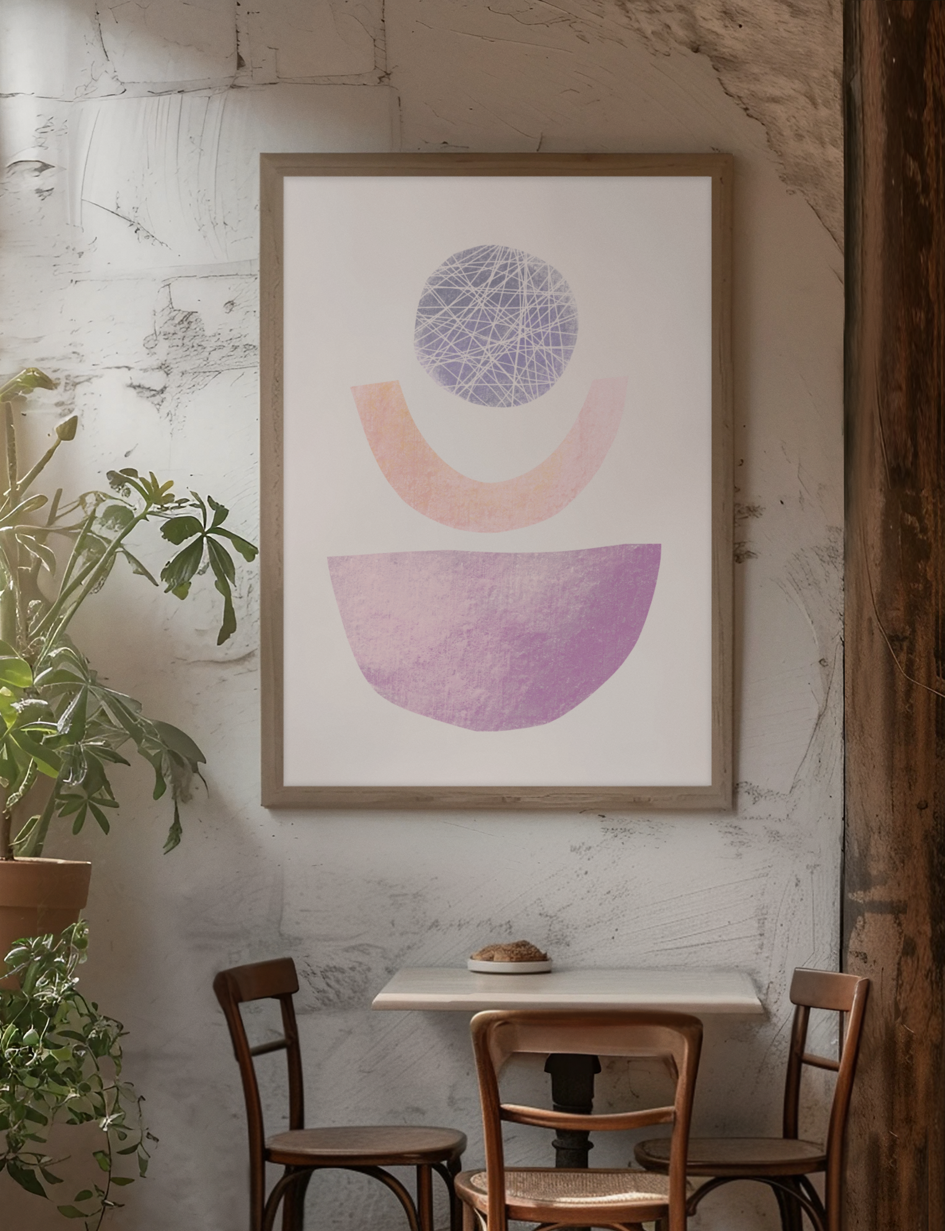 Laat je betoveren door dit prachtige abstracte kunstwerk in rustgevende pasteltinten, geïnspireerd door het thema balans. Dit werk vangt de essentie van harmonie en evenwicht, perfect om een serene sfeer te creëren in elke ruimte.
