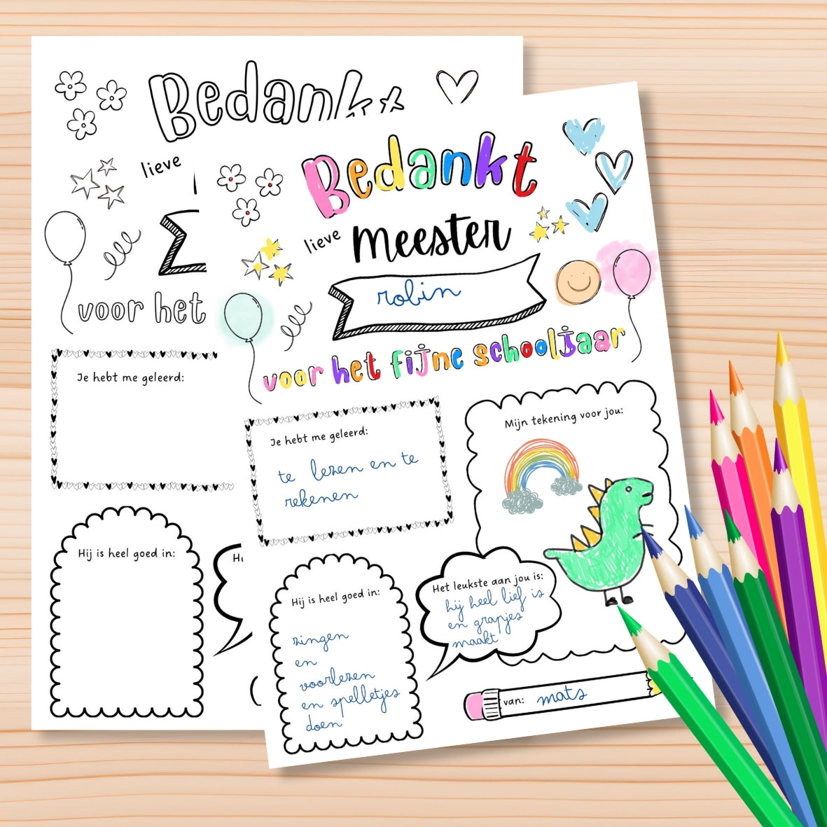 Bedankje voor de Meester, Kleurplaat met een persoonlijk berichtje (Digitale Download PDF)