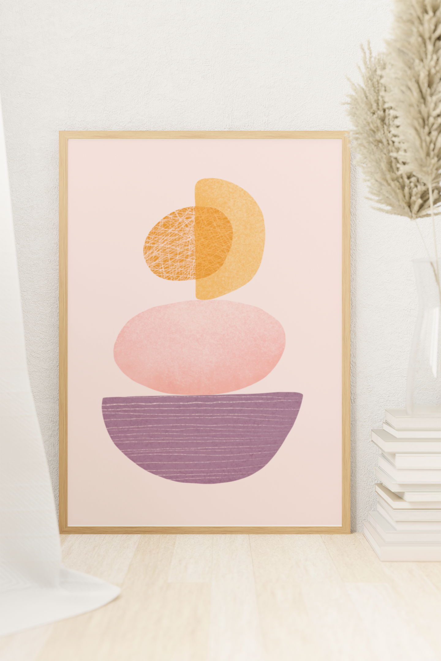 Laat je betoveren door dit prachtige abstracte kunstwerk in rustgevende pasteltinten, geïnspireerd door het thema balans. Dit werk vangt de essentie van harmonie en evenwicht, perfect om een serene sfeer te creëren in elke ruimte.